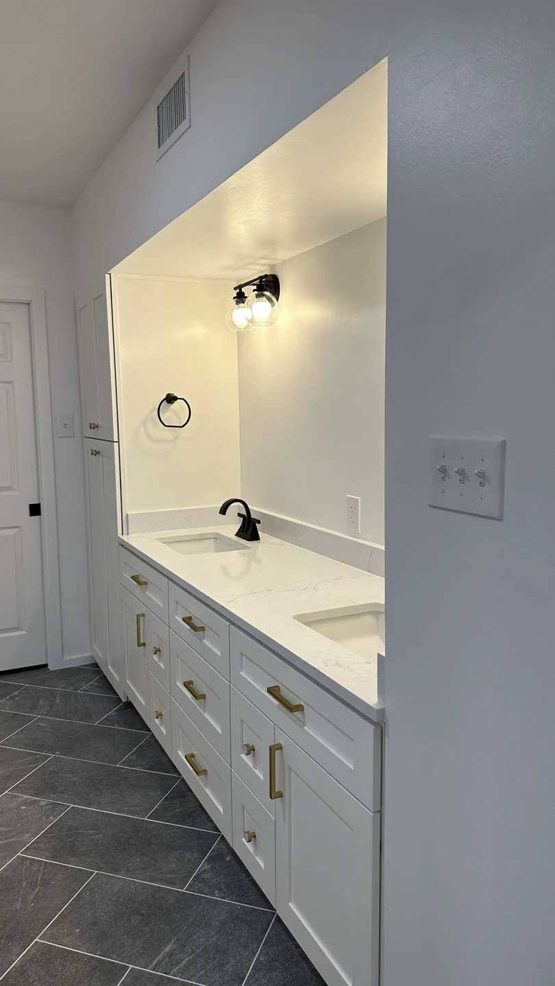 New vanities were installed, providing ample storage and a fresh, modern look. The countertops were updated with high-quality materials, adding both beauty and functionality to the space.
