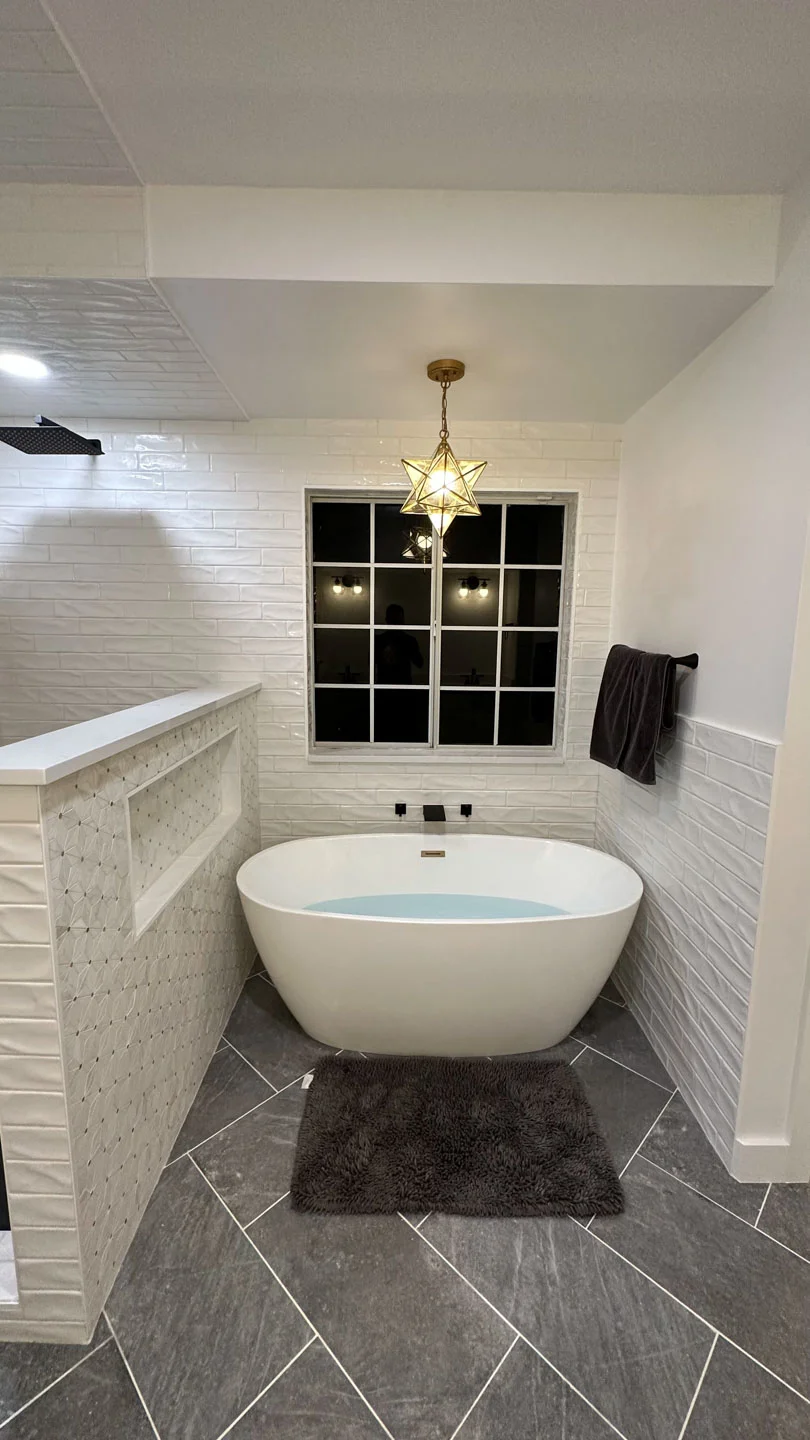 This comprehensive bathroom remodel transformed the space into a serene and luxurious retreat. With a freestanding tub, revamped subway tile shower, and modern vanities, every detail was designed to enhance both beauty and functionality. The updated lighting, elegant finishes, and thoughtful craftsmanship create a cohesive, inviting atmosphere for ultimate relaxation.